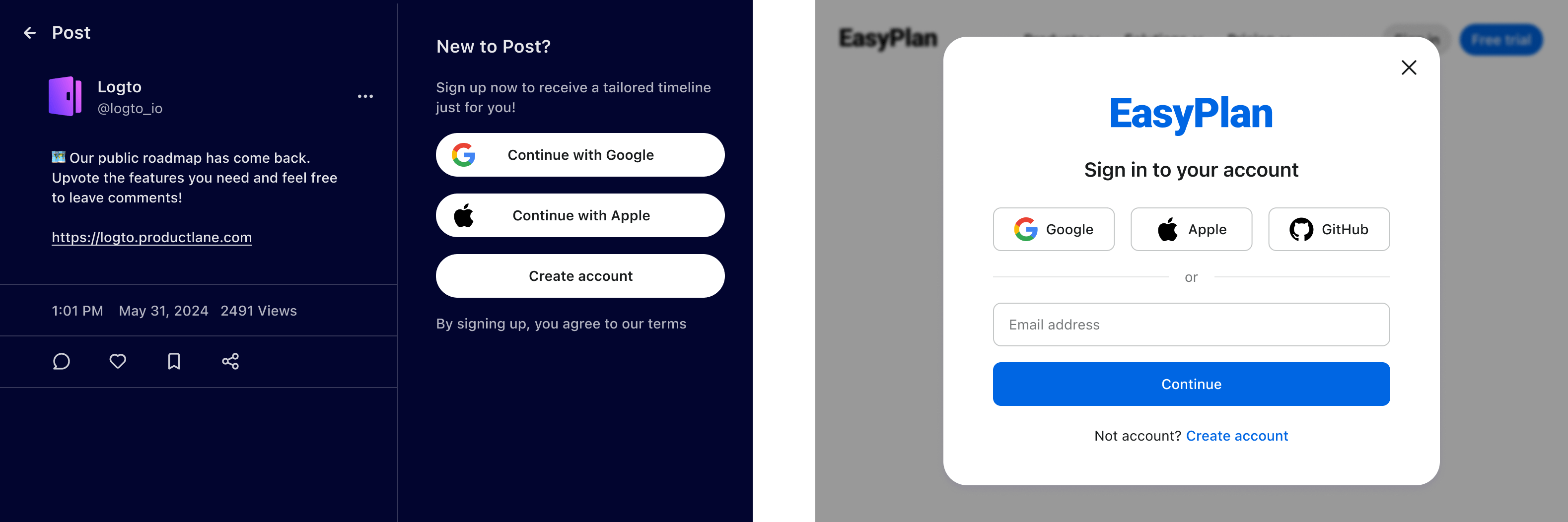 - When users click on a social sign-in button (e.g., "Continue with Google"), use the direct sign-in parameter to immediately redirect them to the social provider.